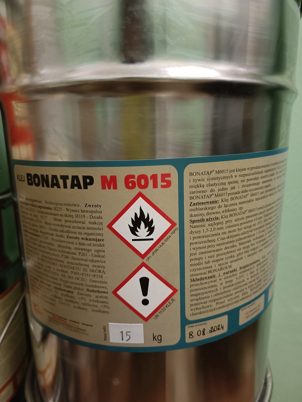 BONATAP M6015 – адгезив на основе синтетических каучуков и смол в органических растворителях. Клей после сушки дает мягкое эластичное соединение, не вызывает усадки пены. Он характеризуется длительным открытым временем и слабым запахом.