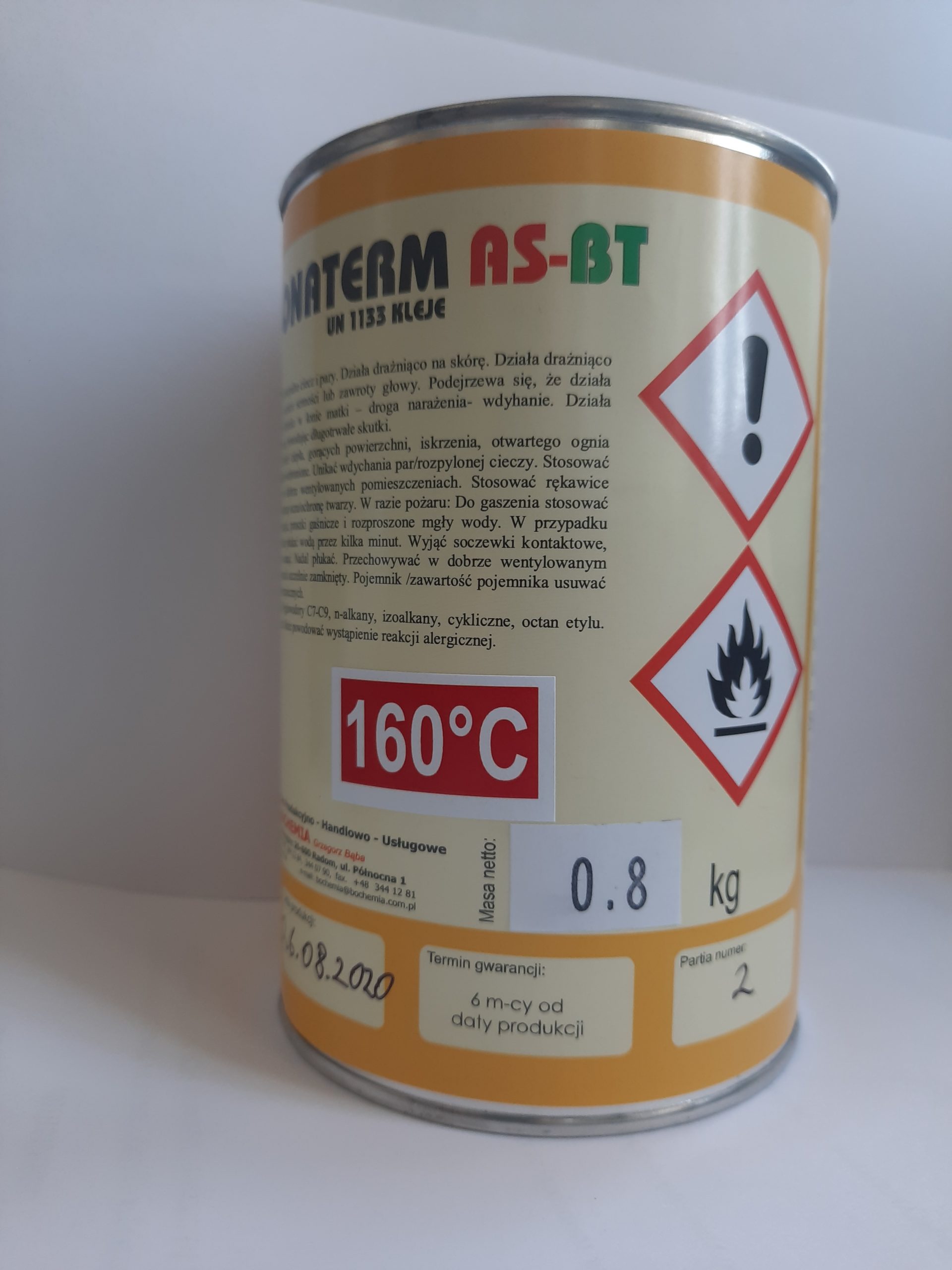 Клей Bonaterm AS-BT. Высокотемпературный контактный полихлоропреновый клей. Предназначен для применения в автотранспортной промышленности для ремонтных операций по склеиванию натуральных и синтетических кож ,различных обивочных материалов между собой и металлом и пластиком. Имеет очень высокую термоустойчивость шва (160 гр С)